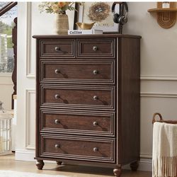 Farmhouse 6 Drawer Dresser, Chest of Drawers for Bedroom, 43.5" Tall Walnut Kids Dresser with Roman Column and Metal Handles, Storage Dressers Organiz$160Mountainside, NJ