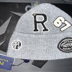 NWT Polo Ralph Lauren Gray #67 - PRL - BIG R - FOOTBALL Patch Knit Beanie Hat$125Queens, NY