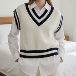 Dotti White & Navy V-Neck Sweater Vest - Size S$24Brooklyn, NY