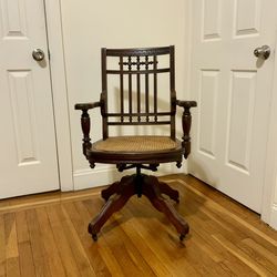 Vintage 1885’s Victorian Office Desk Chair Cane Seat Antique Cast iron Walnut Adjustable swivel and tilt Late Mid Century furniture$1Bronx, NY