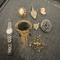 Vintage 60s Brooches Lockets Pins Benrus Watch$130Edgewater, NJ