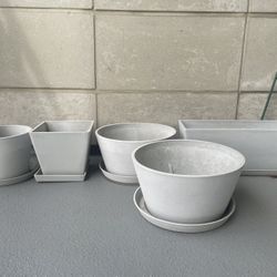 Five Gray Ceramic Planters with Saucers – Great Condition + Bonus Tools!$60South Farmingdale, NY