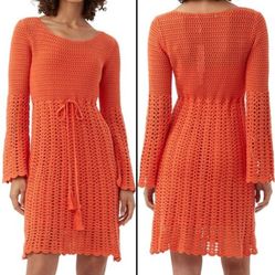 Sz L Trina Turk Orange Gloria Knit Long Sleeve Dress w/ Matching Slip MSRP $498$149New York, NY