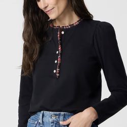 J.Crew Factory Long-Sleeve Tartan and Jewels Henley in Black - XS NWT$15E Atlantc Bch, NY