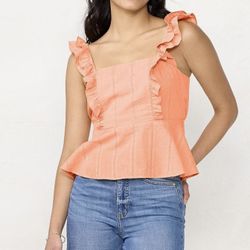 Women's LC Lauren Conrad Ruffle Peplum Tank in Peach Mum - S NWT$15E Atlantc Bch, NY