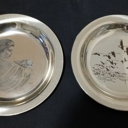 Franklin Mint Sterling Silver Plates - 1972 Mother's Day by Irene Spencer + 1974 Geese Flying by Peter Parnall $800Staten Island, NY