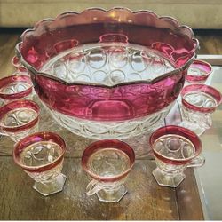 Kings Crown Ruby Red Puch Bowl with 11 Cups Vintage Ruby Red Punch Bowl & Ladle$120Newark, NJ