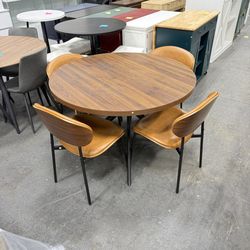 Dining table with Chairs Set of 5 , round table 45.3 in. Mid-Century Style Living Room Chairs, Modern Chairs for Dining Room & Kitchen, Leather Uphol$399Union, NJ