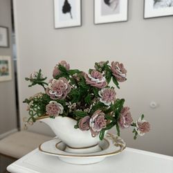 Vintage Beaded Flowers In a Ceramic Cup And Saucer Base$10Syosset, NY