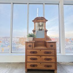 Vintage Victorian Traditional Midcentury Modern Minimalist Brown Wood Dresser Chest Of Draws with Removable Mirror (πFree Local Delivery)$349Brooklyn, NY