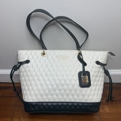GUESS Quilted Two-Tone Tote in White and Black with Gold Hardware$54Roselle, NJ