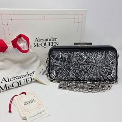 Alexander McQueen T-Bar Broken Glass Small Box Clutch Bag Black Silver Chain ITALY Gothic Crystals$1,900Queens, NY