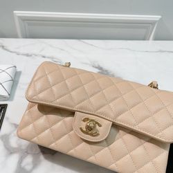 Beige caviar-colored leather classic quilted flip-top gold chain luxurious cross-back shoulder handbag$169New York, NY