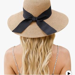 Packable Wide Brim Straw Sun Hat w/ Brown Ribbon$10New York, NY