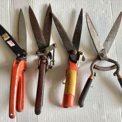 4 Preowned Garden Tools Grass Shears Forged Steel Hand Clippers Wallace Fiskars etc.$40Garden City P, NY