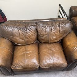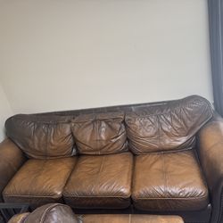 Brown Leather Couch Chair And Ottoman$150Jersey City, NJ