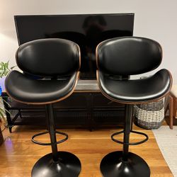 2 Black Faux Leather and Wood Bar Stools$130White Plains, NY