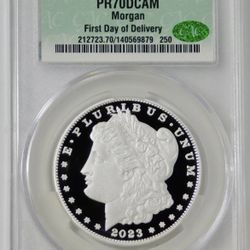 2023-S Morgan Silver Dollar First Day of Delivery TOP GRADE! CACG Proof 70 DCAM$175Teaneck, NJ