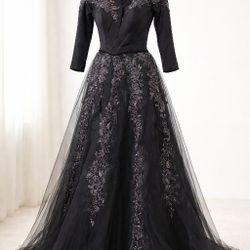 Black Long Sleeve Embroidered Tulle Gown$100Queens, NY