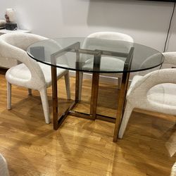 Tall Glass Table With 4 Adjustable White Leather Chairs$450New York, NY