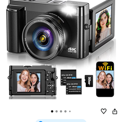 4K 64MP WiFi Vlogging Camera w/ Flip Screen, 16X Zoom, Black$35New York, NY