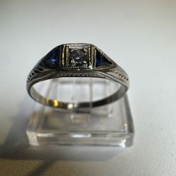 Antique Art Deco 1920s 14K White Gold Sapphire Diamond Ring Size 5.75$450Brooklyn, NY