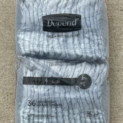 UNOPENED - 36 Pack of Depends Underwear - Size L (diapers, pants)$15Uniontown, OH