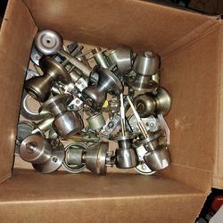 BOX OF DOOR HANDLES, DEADBOLTS, AND HARDWARE ( NO KEYS)$15Canton, OH