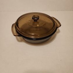 Ovenware Covered Casserole Dish Amber Glass Round