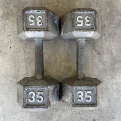 35lb Cast Iron Hex dumbbell set dumbbells 35 lb lbs 35lbs Weight Weights pair pound pounds$60Cleveland, OH