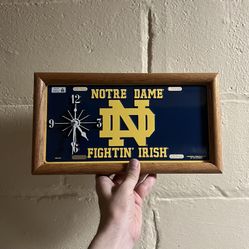 Notre Dame University Fighting Irish Metal License Plate Wood Framed Wall Clock Working Works$30Cleveland, OH