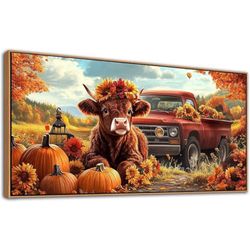 QZQCBLC Large Fall Wall Art - Orange Retro Farm Landscape Paintings Artwork Red Truck Cute Cow Pumpkins Sunflowers Rustic Autumn Canvas Picture for Li$60Cleveland, OH