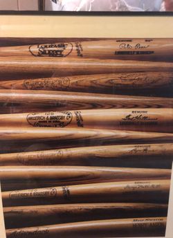 A glass framed portrait of the autographed bats of Legends of baseball$50Strongsville, OH