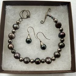 Silpada Black Pearl Toggle Bracelet And Dangle Earring Set$170North Canton, OH