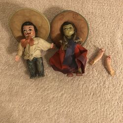 Vintage Mexican Composite Dolls Man And Woman With Sombreros 5” Tall $65Cuyahoga Falls, OH
