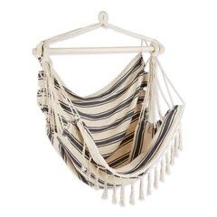 BLUE AND CREAM TICKING STRIPE HAMMOCK CHAIR WITH FRINGE TRIM$58Akron, OH