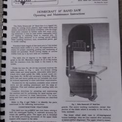 Operating Manual For Homecraft Delta 10 Inch Bandsaw$8New Franklin, OH