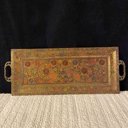 Tray Brass Painted Floral Rectangle 18” Handle To Handle 7” Wide $125Akron, OH