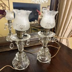 Pair Crystal Table Lamps Frosted Grape Shades $40Tallmadge, OH
