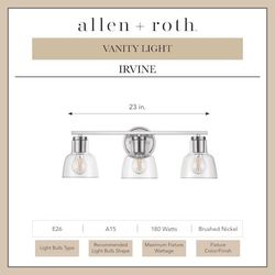 allen + roth Irvine 23-in 3 Light Brushed Nickel Transitional Bathroom Vanity light$50Akron, OH