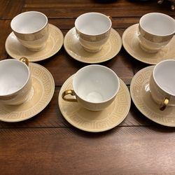 Gold Elegant Beige Gold Greek Key Cups & Saucers Set $15Tallmadge, OH