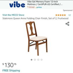 Stakmore Queen Anne Folding Chair Finish, Set of 2, Fruitwood$100Barberton, OH
