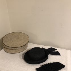 Vintage Women’s Black Bowler Style Hat With Pull Down Net Plus Hat Box $60Cuyahoga Falls, OH