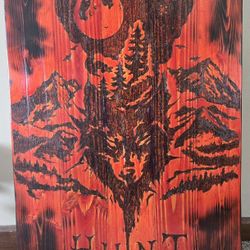HUNT - Wolf Head - Pyrography Wood Art $500Magnolia, OH