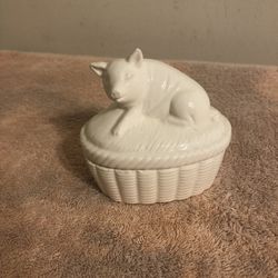 Vintage Action Ceramic Pig On A Basket Trinket Box 4”x4”x3” Made In Japan $19Cuyahoga Falls, OH