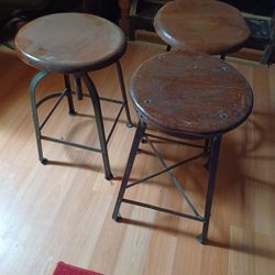 Trio Of 1920's Cast Iron Stools With Oak Seats$75Massillon, OH