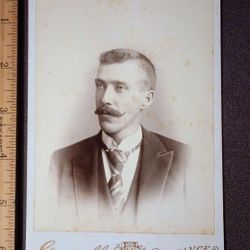 1890's Gentleman Man Handlebar Mustache Tie Grossell Defiance Ohio Portrait Picture Cabinet Card Antique Original Collectible OOAK One Of A Kind A-1$18Salem, OH
