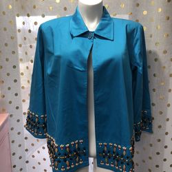 NWT Linea By Louis Dell’ Olio Size 1X Handmade Turquoise Beaded Open Front Jacket PIT TO PIT:40” LENGTH:48” SLEEVE:19”$10Florence, KY