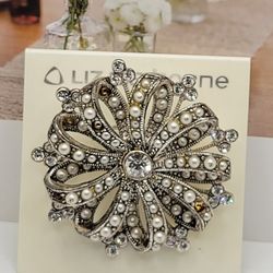 LIZ CLAIBORNE VINTAGE BROOCH, Cz DIAMONDS, 2"IN