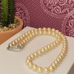 #2377, SIGNED JAPAN VINTAGE PEARLS NECKLACE, CHAMPAIGN TONE 6mm, 15"in $55Florence, KY